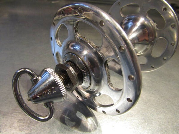ZEUS GIGANTIC 30o WORLD LOGO FRONT HUB WITH STRAIGHT QR LEVER AND CONE SHAPPED WING NUT. NOS!