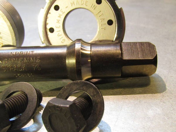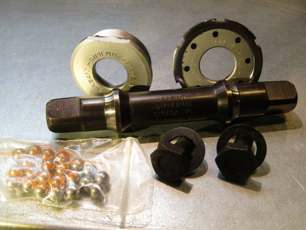 GIPIEMME SPECIAL/SPRINT ITALIAN Thread 36X24F Bottom bracket with 2 spindles, SILVER Spindle will be 112mm SPECIAL / BLACK Spindle will be 115mm NOS! This item will be100% GIPIEMME! This BB will also work with CAMPAGNOLO NUOVO/SUPER RECORD and GRAN SPORT Crank sets.