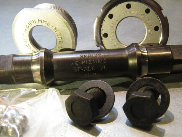 GIPIEMME SPECIAL / SPRINT ITALIAN Thread 36X24F Bottom bracket BONUS offering with 2X Spindles, 1X SILVER SPECIAL 112mm / 1X BLACK SPRINT 115mm you'll have your choice! This item will be 100% GIPIEMME including GIPIEMME 1/4 in loose ball bearings. In need of a CAMPAGNOLO Replacement but do not want to pay the price for CAMPAGNOLO, Then here you go, willl work just fine with NUOVO / SUPER RECORD and GRAN SPORT!