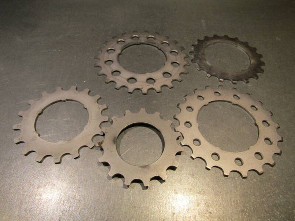 REGINA EXTRA CASSETTE Cogs 5X 15Threaded all others17-19-21-23t will be splined. These Cogs can only be used with a REGINA EXTRA Alloy Cassette body. What you see is what you will get, 23t Cog shop wear can be seen. SORRY to say, we will not break up the set.