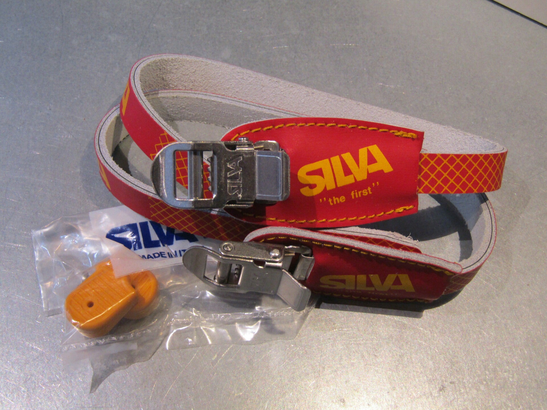 **SILVA LAMINATED RED/YELLOW Toe straps with BUCKLE Pads NOS! BXC00I2 - 2/21/19